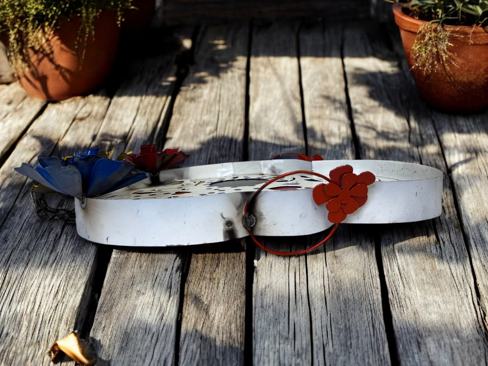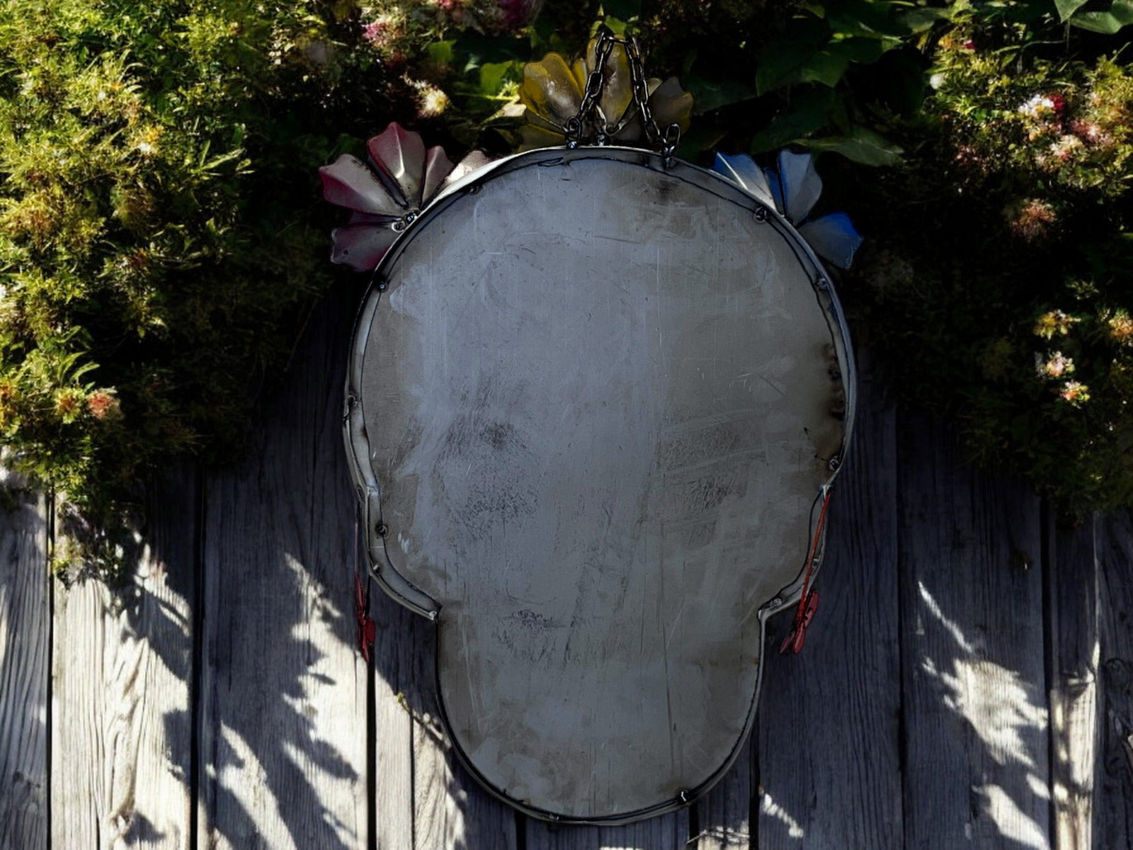 Celebrate Dia de los Muertos with this traditional Mexican skull decor piece! Flat in design, adorned with 3 vibrant flowers on top, and featuring a heart in the center of the forehead. Add a touch of cultural charm to your space with this unique and festive ornament. Perfect for honoring the tradition in a colorful and symbolic way.