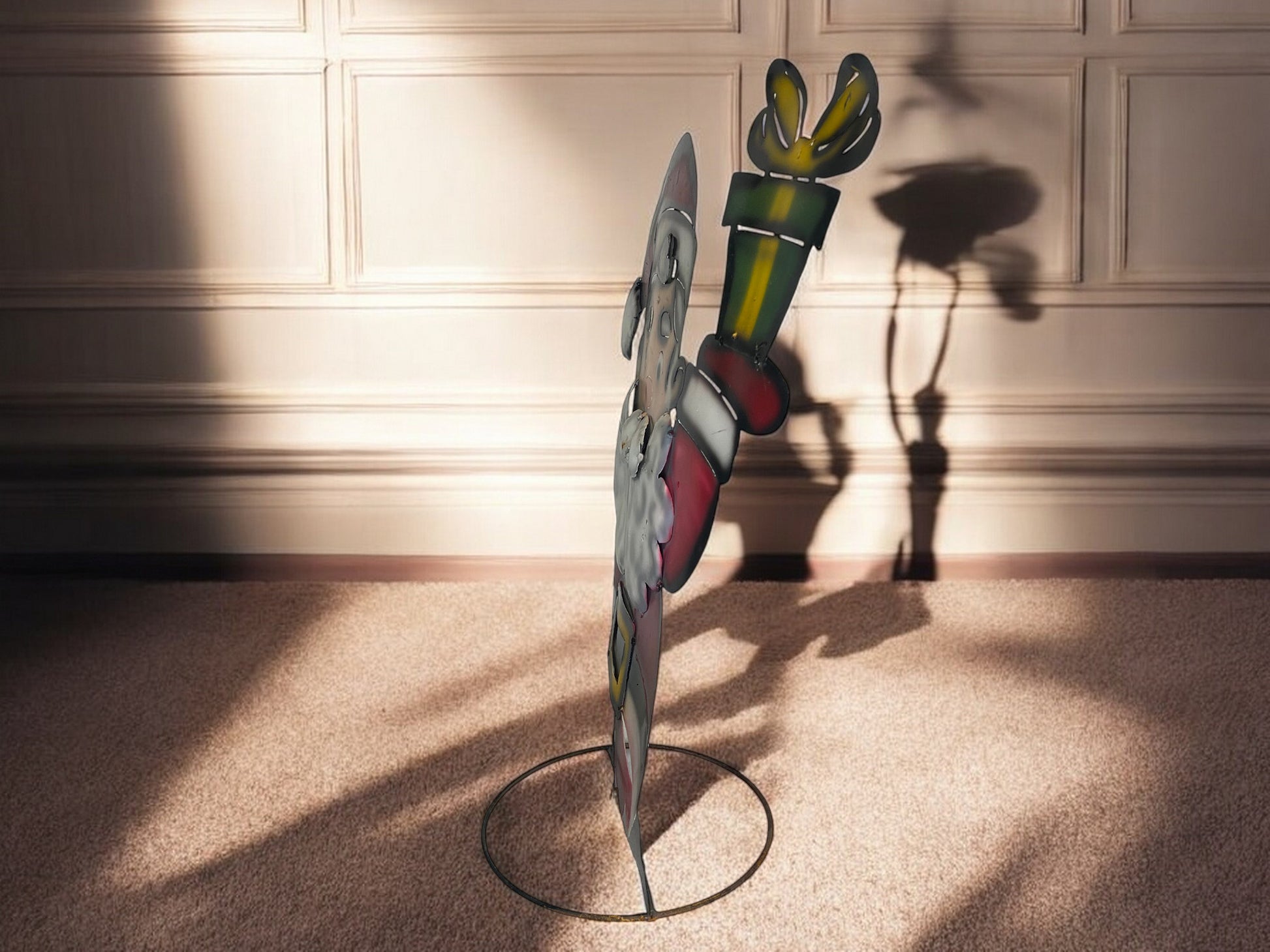 Add festive cheer to your holiday decor with this flat metal Santa Claus screen! Designed with classic Santa details, this piece features Santa holding a gift in one hand and standing on a sturdy circular base. Perfect for a festive porch, mantel, or garden, this Santa figure brings holiday charm indoors or outdoors with its vibrant colors and joyful expression.