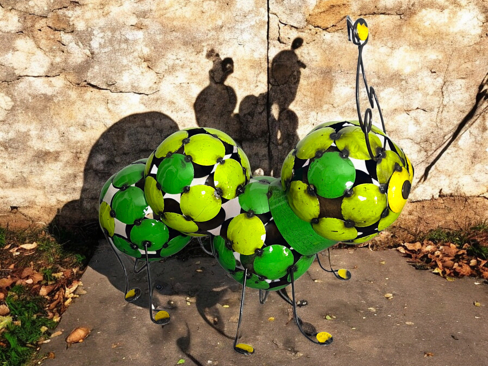 This whimsical green worm sculpture is crafted from circular metal pieces, giving it a unique, textured appearance. With multiple legs and antennas, it brings a fun, quirky vibe to any space. Ideal for garden décor, planters, or as an interesting indoor accent.