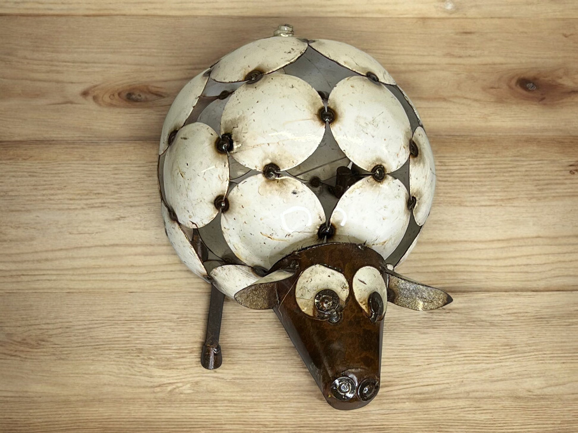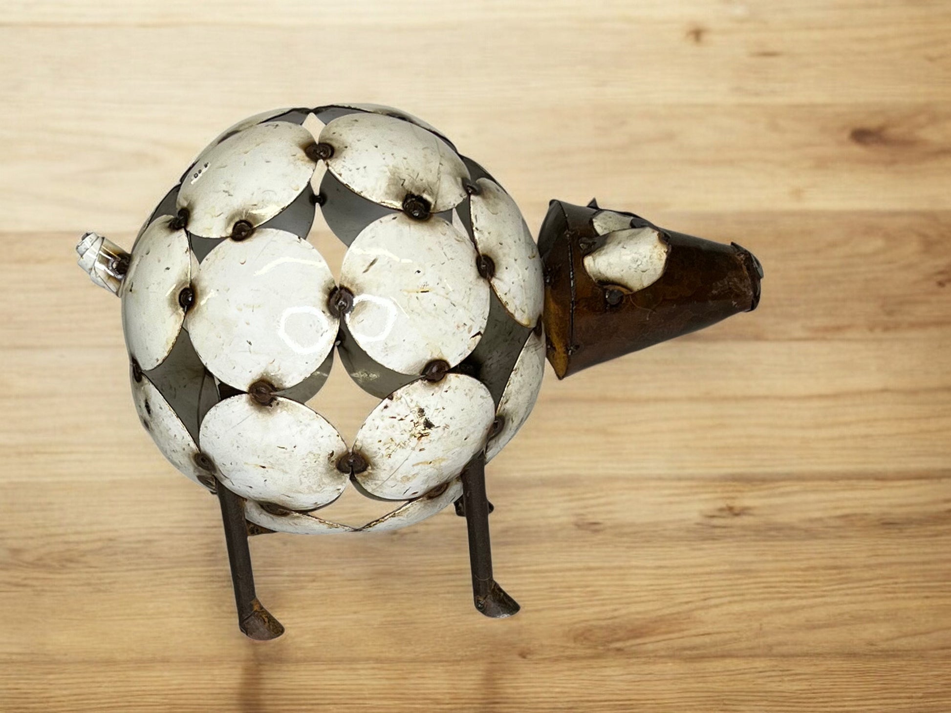Add a playful touch to your home or garden with this handcrafted metal sheep sculpture. Carefully welded from circular metal pieces. This unique sculpture is designed for both indoor and outdoor use, adding charm and character to your living room, patio, or garden. Its sturdy metal construction ensures it can withstand the elements, while its adorable design makes it a fun focal point for any setting.