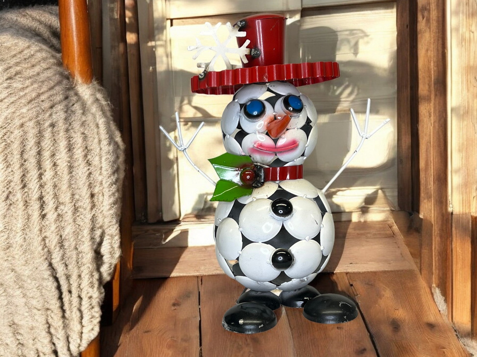 Holly Jolly Snowman Metal Garden Sculpture