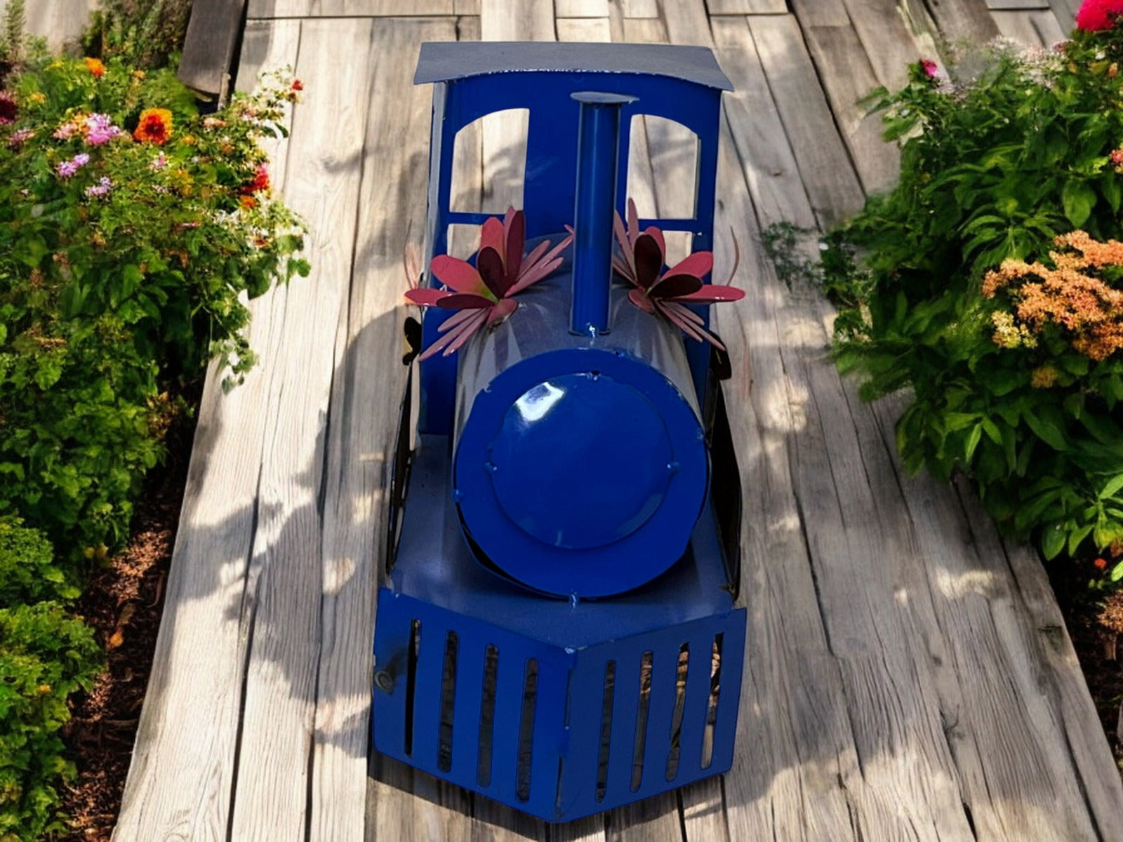 Welcome guests in style with this charming metal train decor! Featuring the word welcome on the sides, adorned with delicate butterflies and vibrant flowers. Add a whimsical touch to your home with this unique piece. Perfect for train enthusiasts and garden lovers alike!