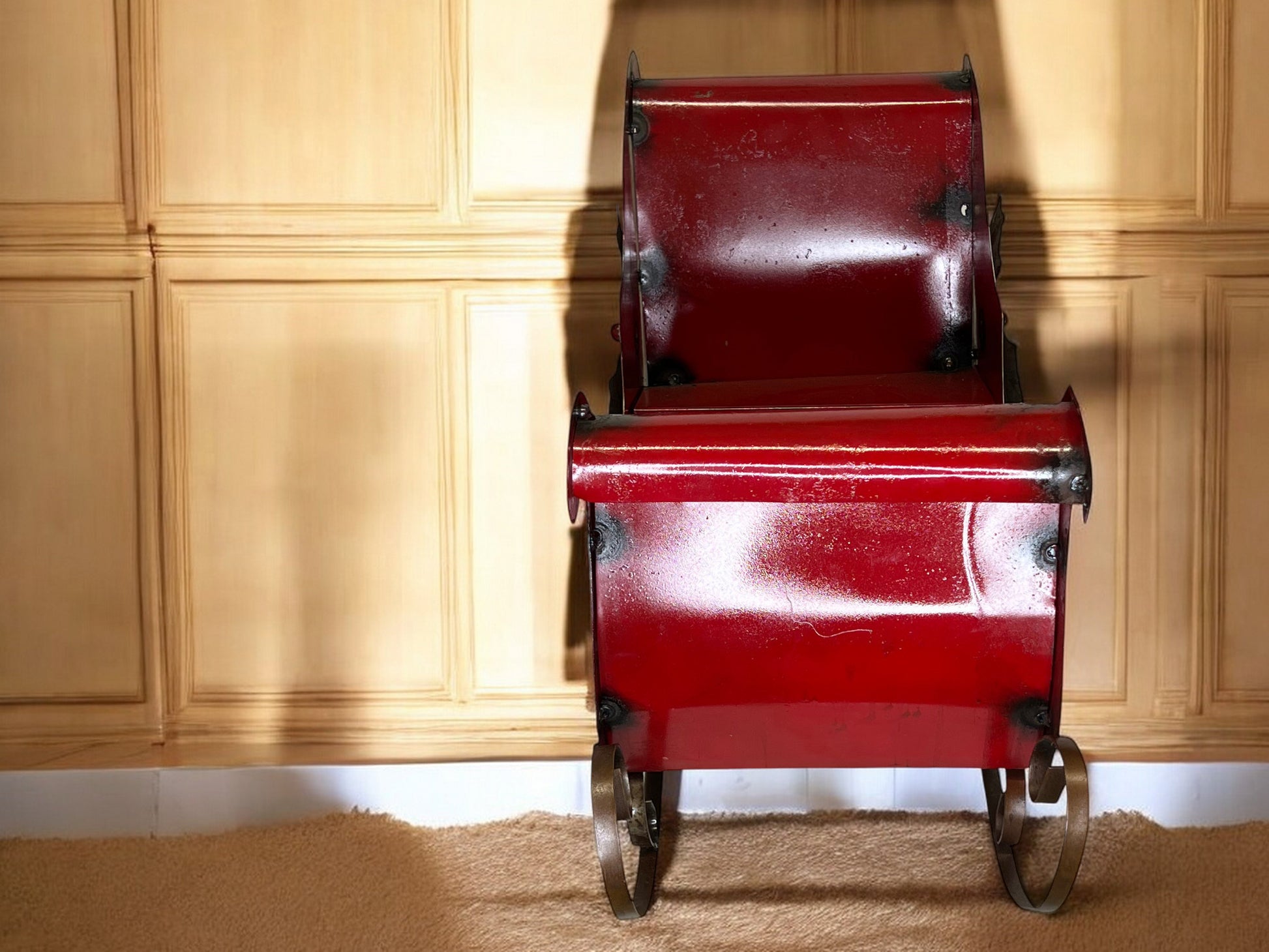 This festive Santa’s sleigh decoration brings Christmas cheer to any setting! With its bright red body, detailed with a white outline along the top, and accented with classic poinsettias on each side, this sleigh captures the magic of the season. It’s an ideal Christmas decoration for tabletops, mantels, or entryways, adding a cozy holiday vibe to your home decor. Perfect as a standalone piece or as part of a winter display, this sleigh is sure to delight. Celebrate the holidays with this charming Santa’s sleigh, crafted to enhance your Christmas decor in classic style. Dimensions: Height 23 inches, Length 10 inches, Width 15 inches