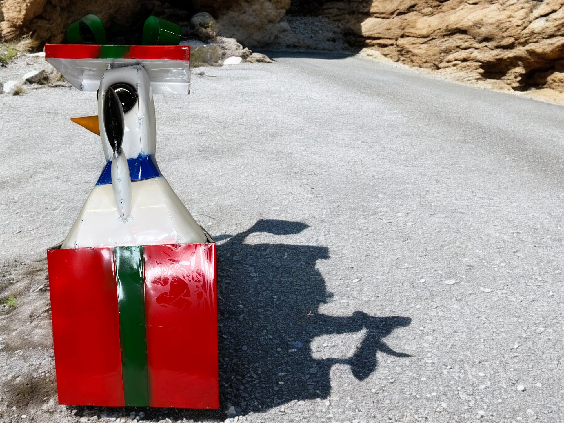 Add playful charm to your holiday decorations with this snowman figurine joyfully popping out of a vibrant red Christmas present wrapped in a green ribbon. With arms spread wide and a cheerful blue scarf, this jack-in-the-box-inspired snowman brings whimsy and warmth to any room or holiday display. Perfect for mantels, shelves, or entryways, it captures the magic of the season, adding festive character wherever it’s placed. Dimensions: Height 24 in, Length 22 in, Width 13 in