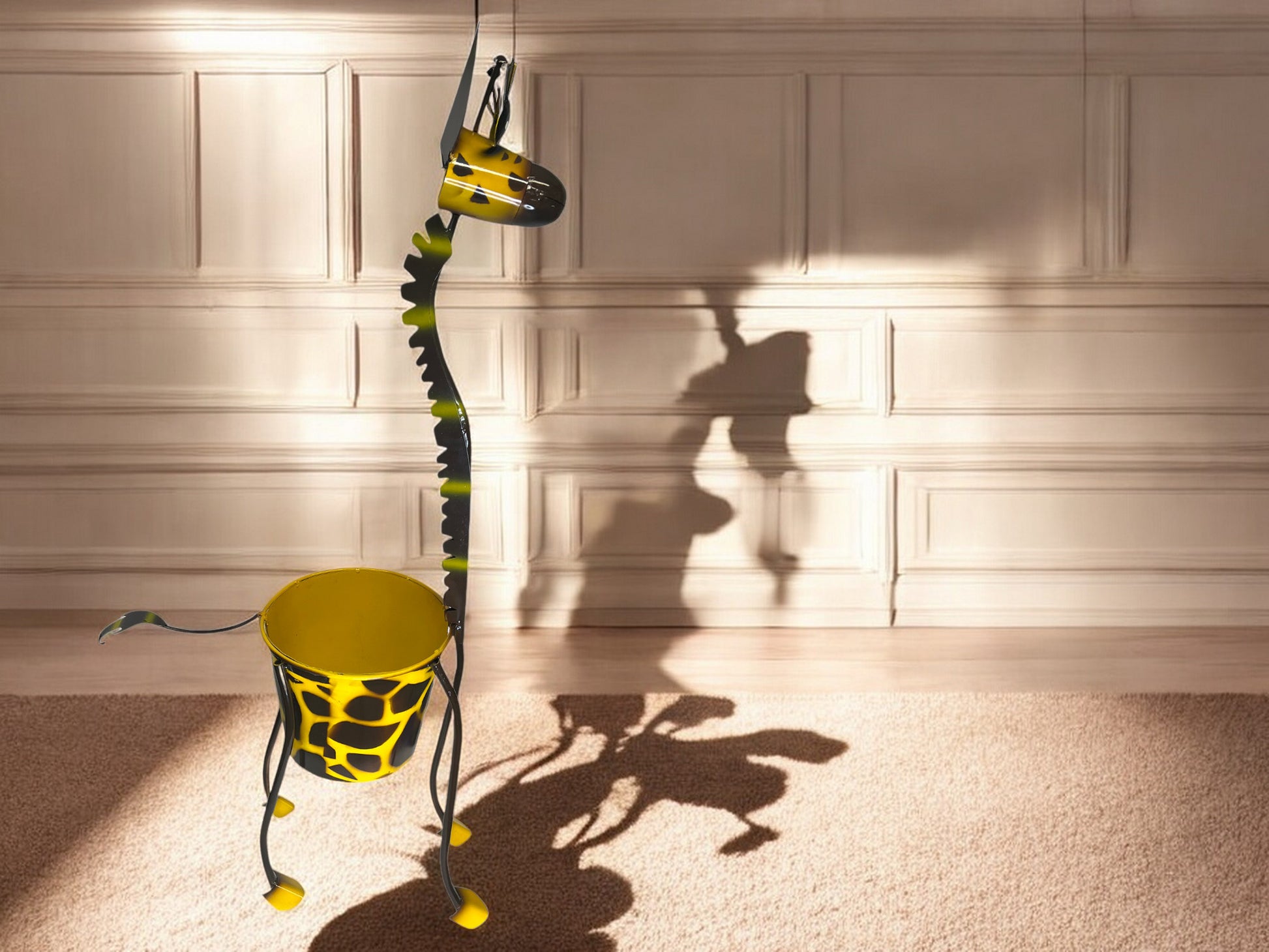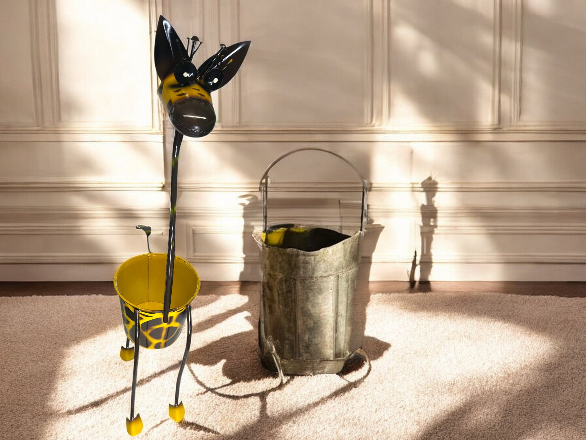 Add a touch of safari-inspired charm to your garden or home with this metal giraffe flower pot holder! Designed with a vibrant yellow body adorned with classic brown spots, this piece stands gracefully on tubular legs and features a tall, tubular neck for a delightful, whimsical look. Perfect for holding flowers or small plants, this giraffe planter is a versatile decorative piece suited for both indoor and outdoor spaces, making it an eye-catching addition to any garden, porch, or room.